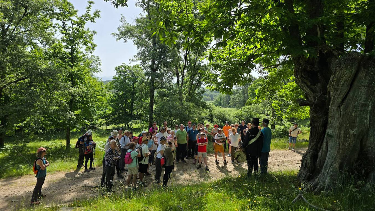 Montemayor del Río ha acogido el 25 de mayo una de las actividades más especiales del Festival de La Candela – Primavera 2025: una ruta hasta la emblemática Peña del Almirez, en plena Sierra de Béjar, que ha reunido a un centenar de personas. La ruta se ha iniciado en la Plaza Mayor y ha discurrido por bellos parajes de castaños y robles, lo que ha permitido a los participantes disfrutar de un paisaje único. El trayecto ha continuado hasta el Pico Almirez. En esta jornada también se ha conocido de cerca el trabajo y producción que se realiza con la madera de los castaños. Esta ruta ha tenido como protagonistas a la naturaleza, la tradición y la comunidad en una misma experiencia! Imagen_La Gaceta de Salamanca