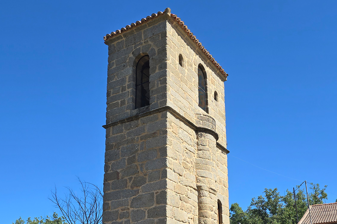 la torre del Campanario se encuentra separada de la iglesia de San Antonio Abad 20m y en la actualidad sirve de campanario aunque antiguamente tuvo la función de torre de vigilancia durante el S.XII. También cabe señalar que en la actualidad el cementerio se encuentra próximo a ella. Este curioso conjunto arquitectónico resulta muy llamativo también por el lugar en el que se encuentra entre castaños